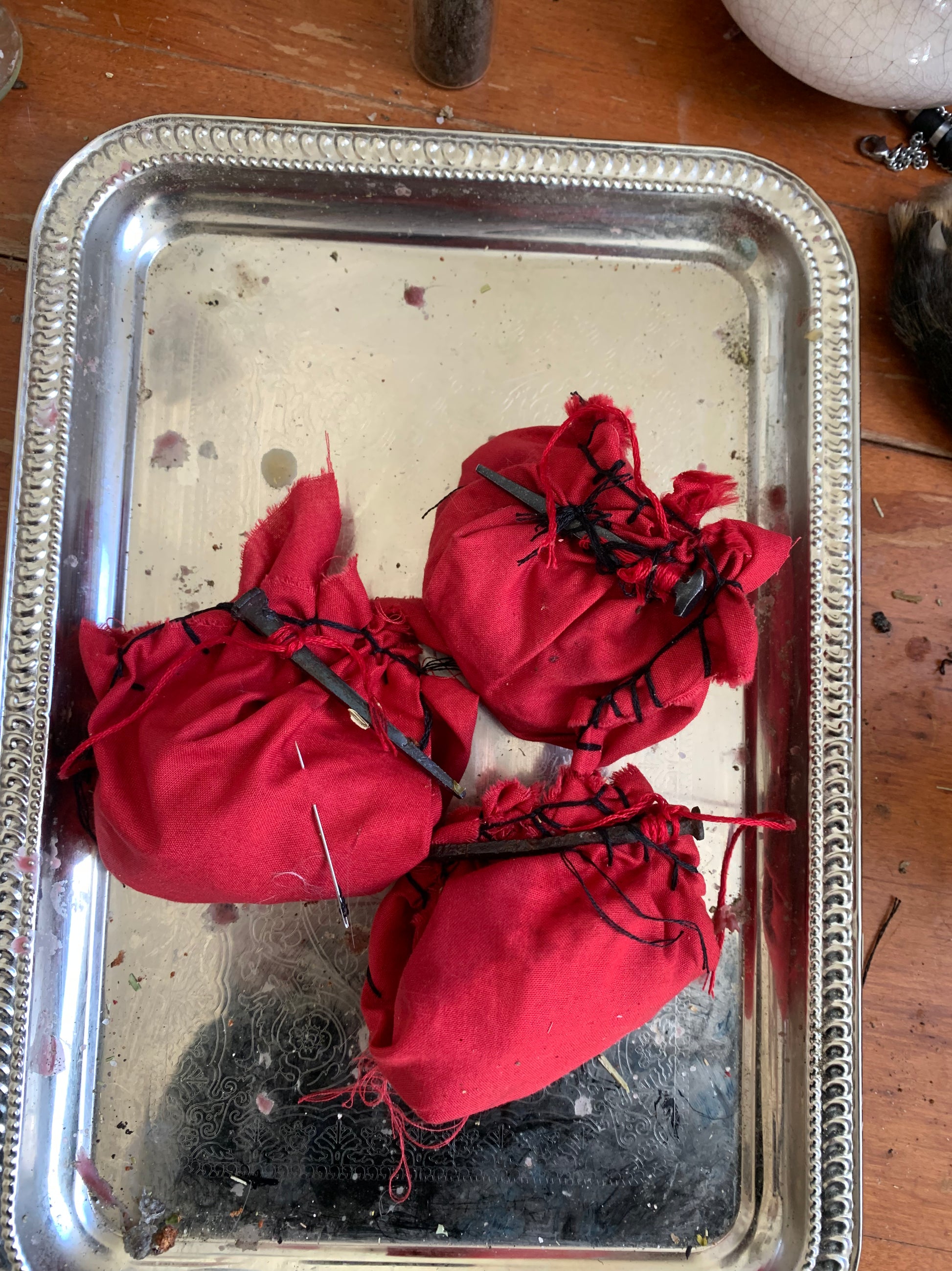 Charm bag workings are those that Chaotic Witch Aunt has been in relationship with and practicing for many years, including the more traditional breve bag of Italian-American folk magic, charm bags for protection of protestors and protection of self and clients, including implementing their embroidery work into the process.