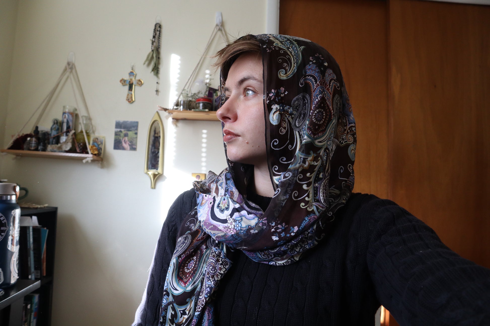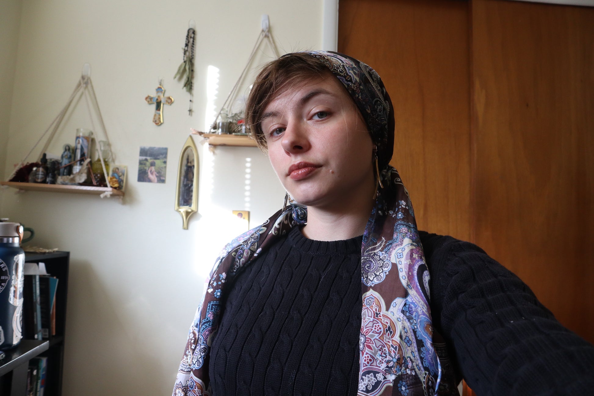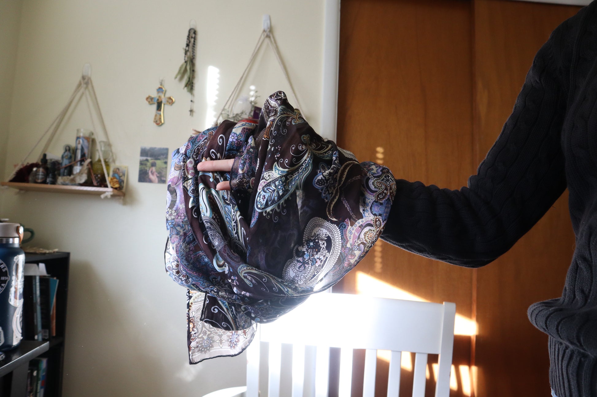 Vintage 100% silk paisley veil. Semi translucent and rectangular. Can be tied at the back, worn around the shoulders, or draped off the head similar to a himateon. 60x16.