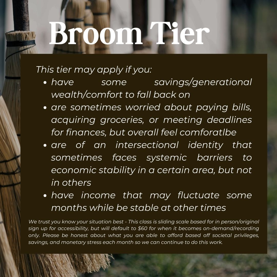 Broom Tier: This is a tier for those who may be feeling stable financially, but aren't feeling as though they are able to donate extra. This tier is around our standard pricing.