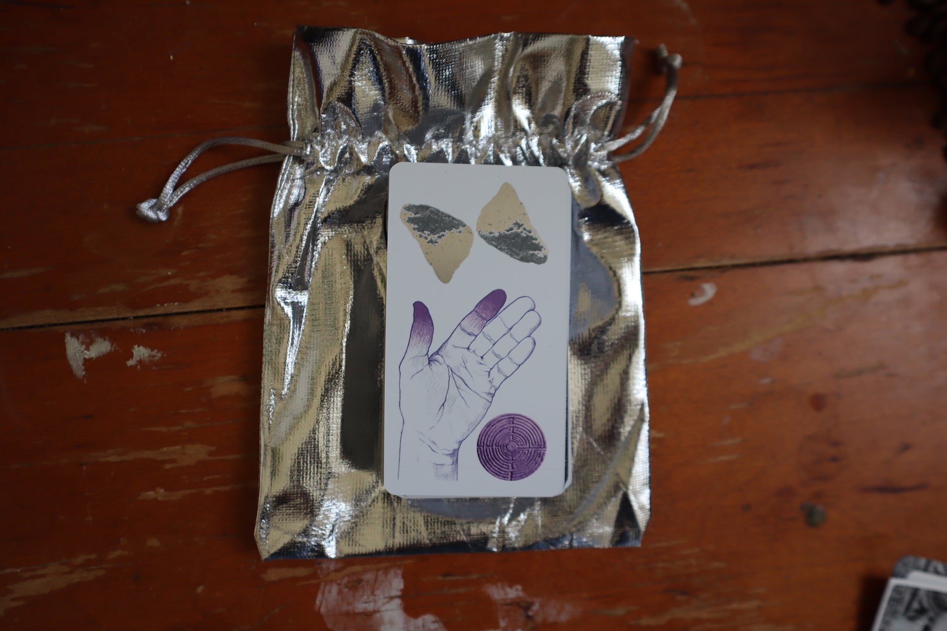 Created by Maria Molteni. Comes with one deck, one silver bag, and a QR code for extra information on playing & reading the cards. Or, purchase a Games are Magic zine here.